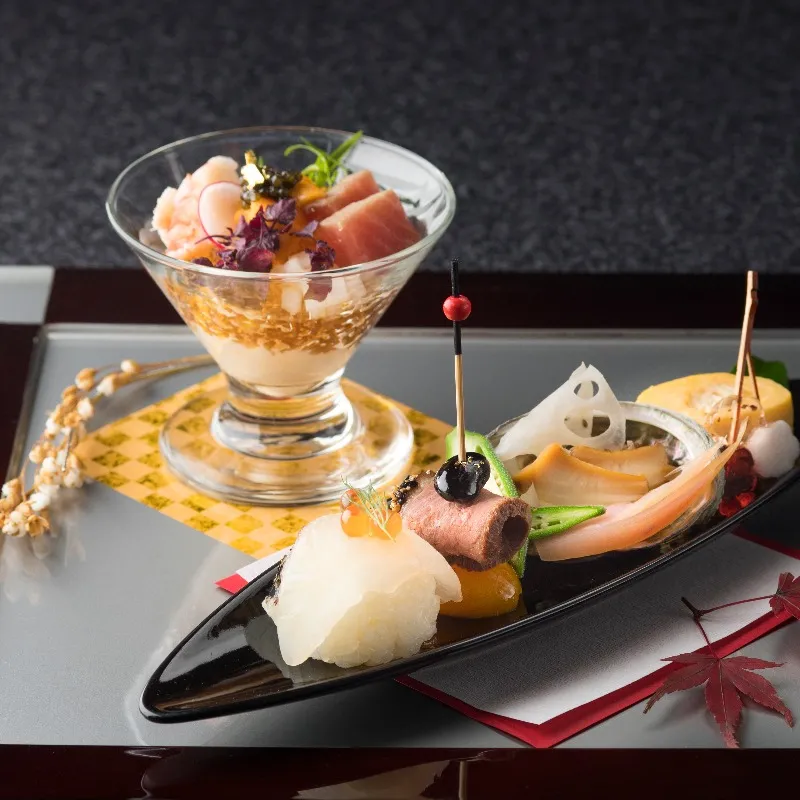 【当館人気No.1豪華4万試食】京宴前菜・国産牛と京野菜のソテー・鯛の出汁茶漬け・西京味噌とキャラメルのムースの4品(※季節や仕入れ状況により内容変更有)