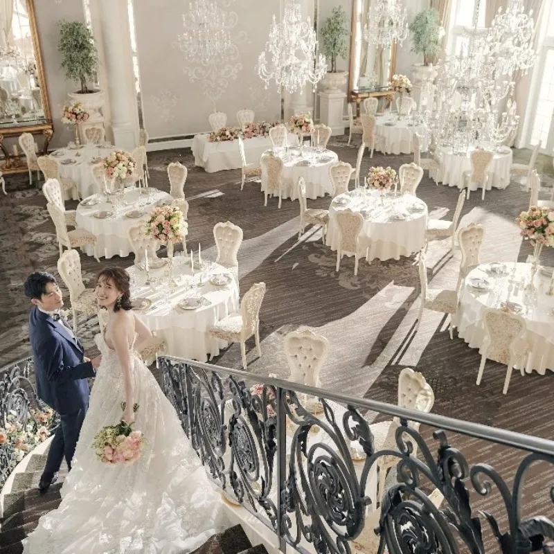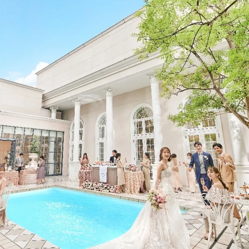 【平日フェアなら3つのパーティ会場が見学OK】憧れの階段入場もOK♪プールやガーデンでのウェルカムパーティ、シェフによるフランベなど多彩な演出が叶う3会場の中からふたりにぴったりな場所をご提案します!